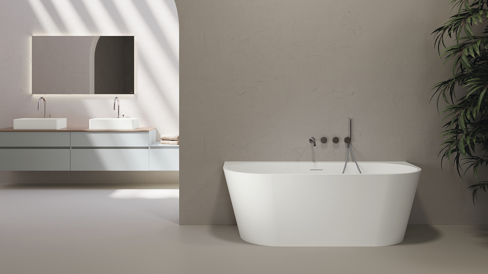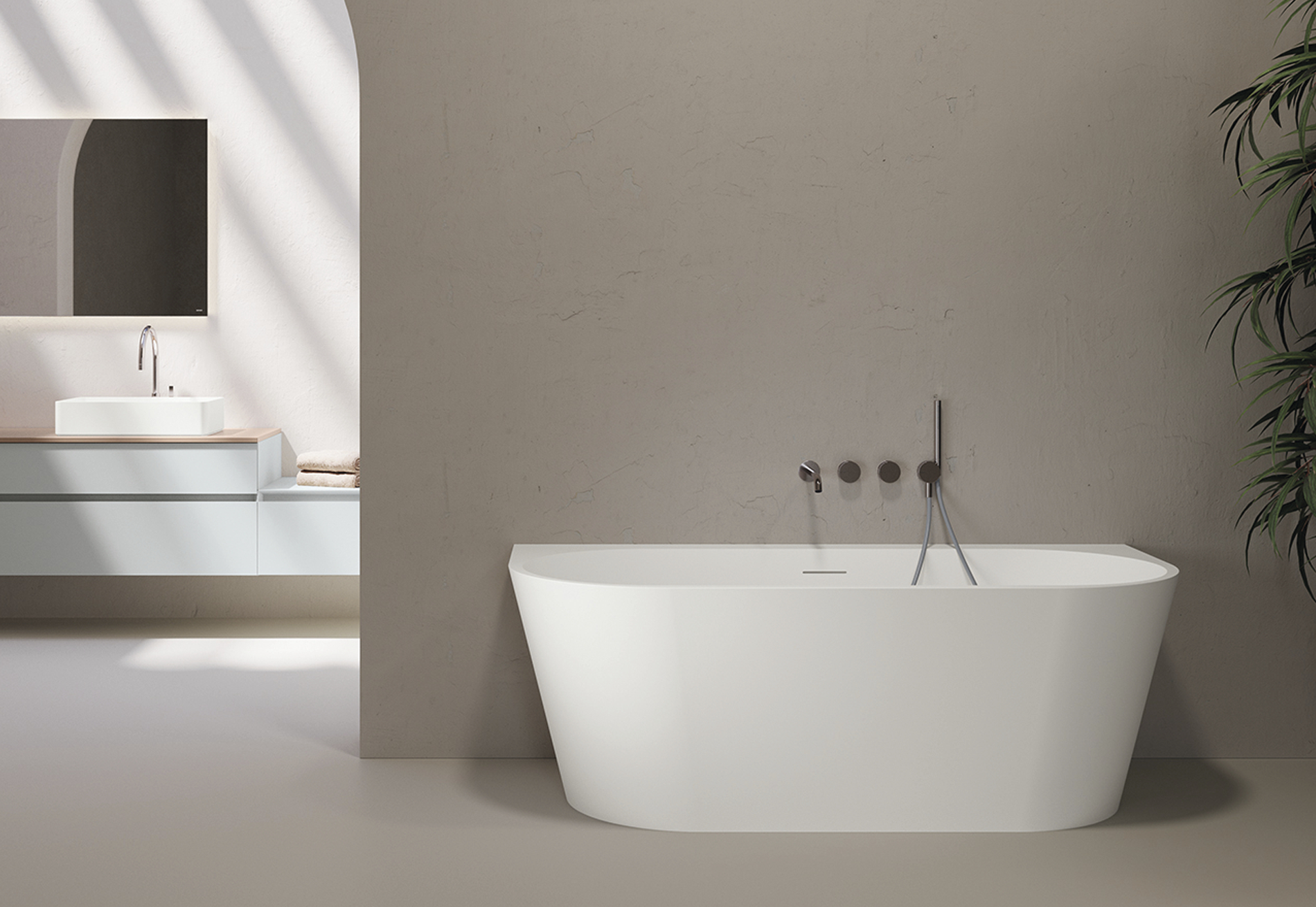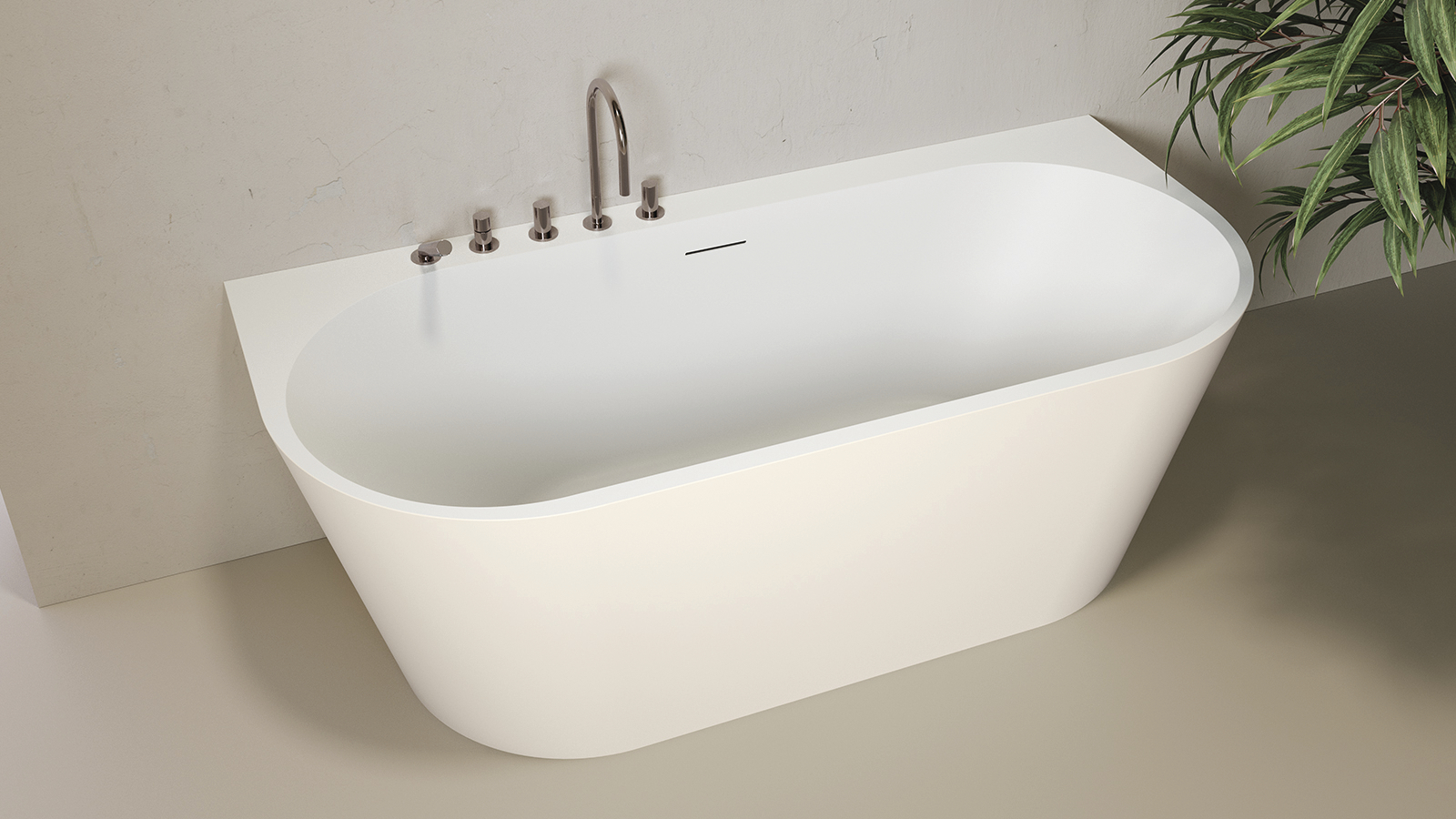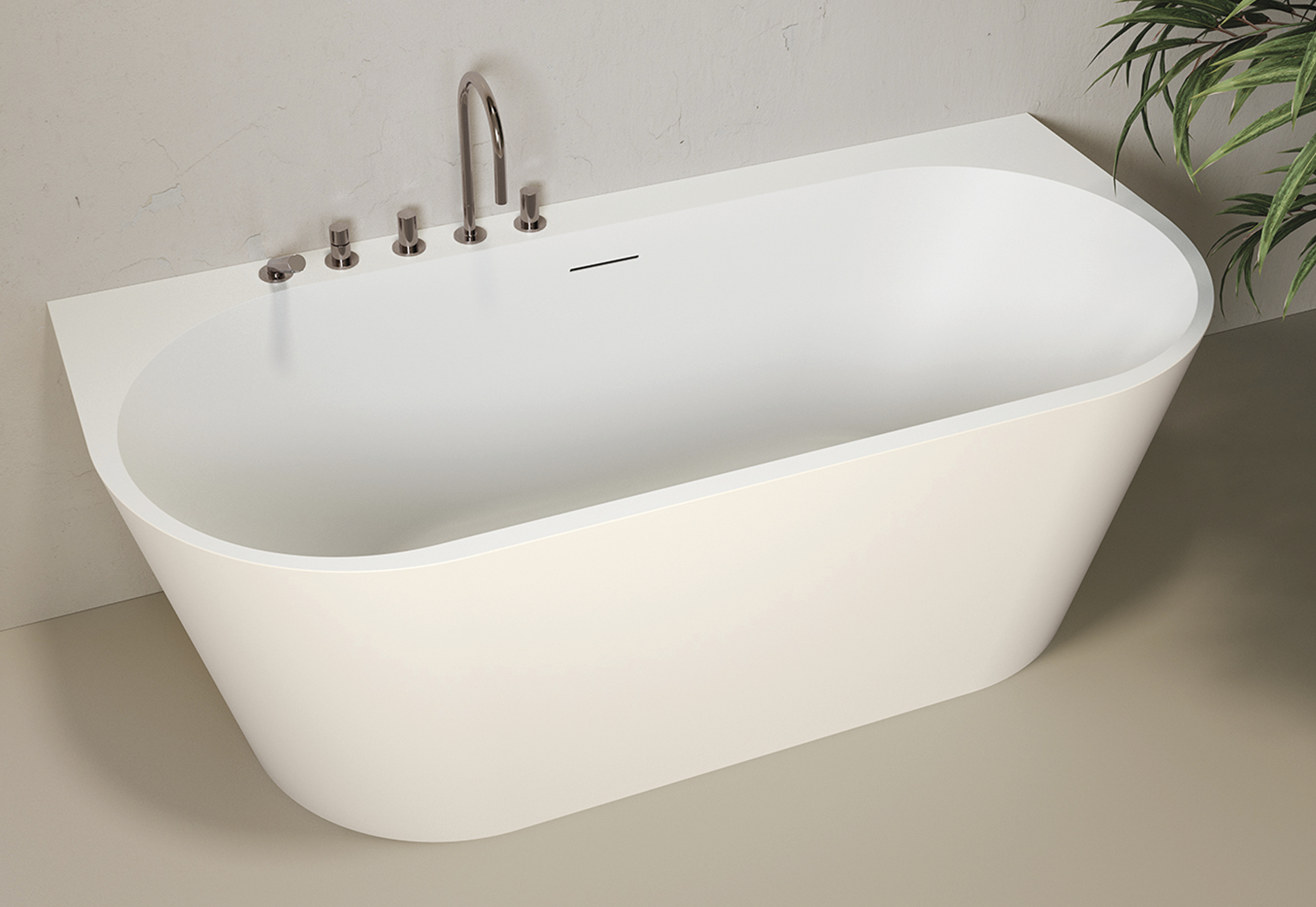 Esta bañera ovalada está diseñada para estar encastrada en la pared gracias a su apoyo en una de las secciones, lo que le da forma de D, El borde de la parte delantera es muy fino para reforzar la sutileza y elegancia de Maracaibo Wall, Está fabricada en Acrylic, un material que además de ser un excelente aislante térmico, es extremadamente duradero al tiempo que destaca por su ligereza y facilidad de instalación, El tono y acabado estándar para esta bañera es el Soft Matt en color blanco, pero puede personalizarse con hasta 19 colores,