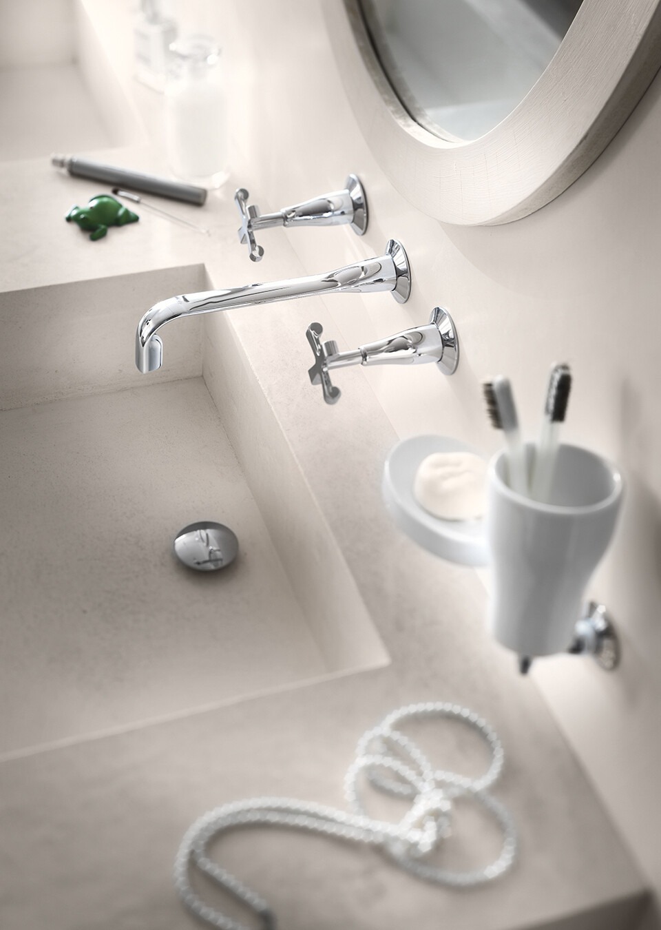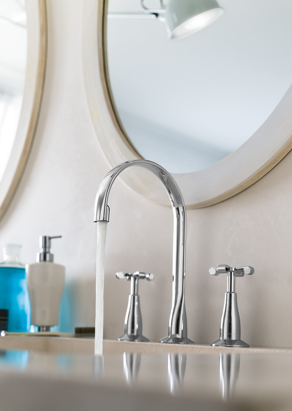 Carlos Primero reinventa el clasicismo del mezclador bimando para dar nueva vida a un carácter libre e inmortal conservado en la memoria del pasado. La pasión por la innovación desarrolla la evolución tecnológica del mando, trazando una línea moderna y nostálgica al mismo tiempo.